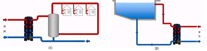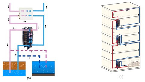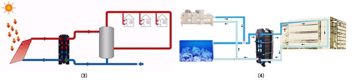 ??⑤地源、水源熱泵: 換熱器作為熱泵主機和開放式冷熱源的分離裝置,克服水質(zhì)對主機等敏感設(shè)備的腐蝕。(圖5)