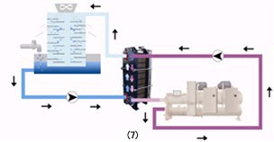 ??換熱器的使用將開式冷卻循環(huán)系統(tǒng)和機組的閉式循環(huán)系統(tǒng)分隔開,有效的保護了機組閉式循環(huán)系統(tǒng)的潔凈,延長了機組的使用壽命。(圖7)